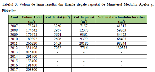 - în 2015 s-a vehiculat cifra de 8,6 milioane mc/ an tăieri ilegale, tot ca rezultat al IFN Ciclul II, adică o medie 2008-2015.